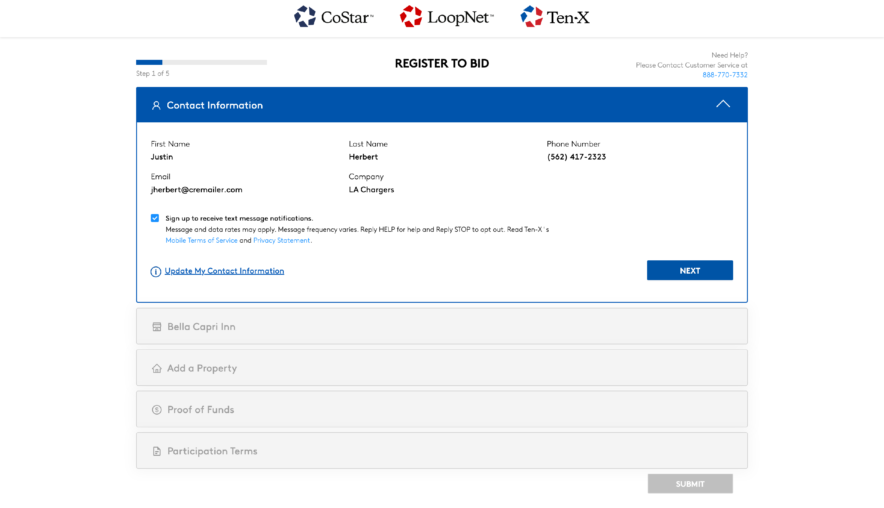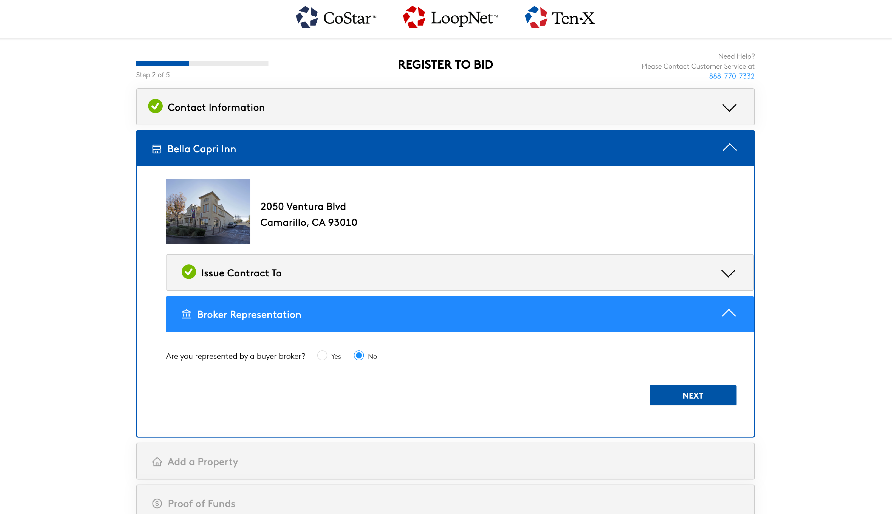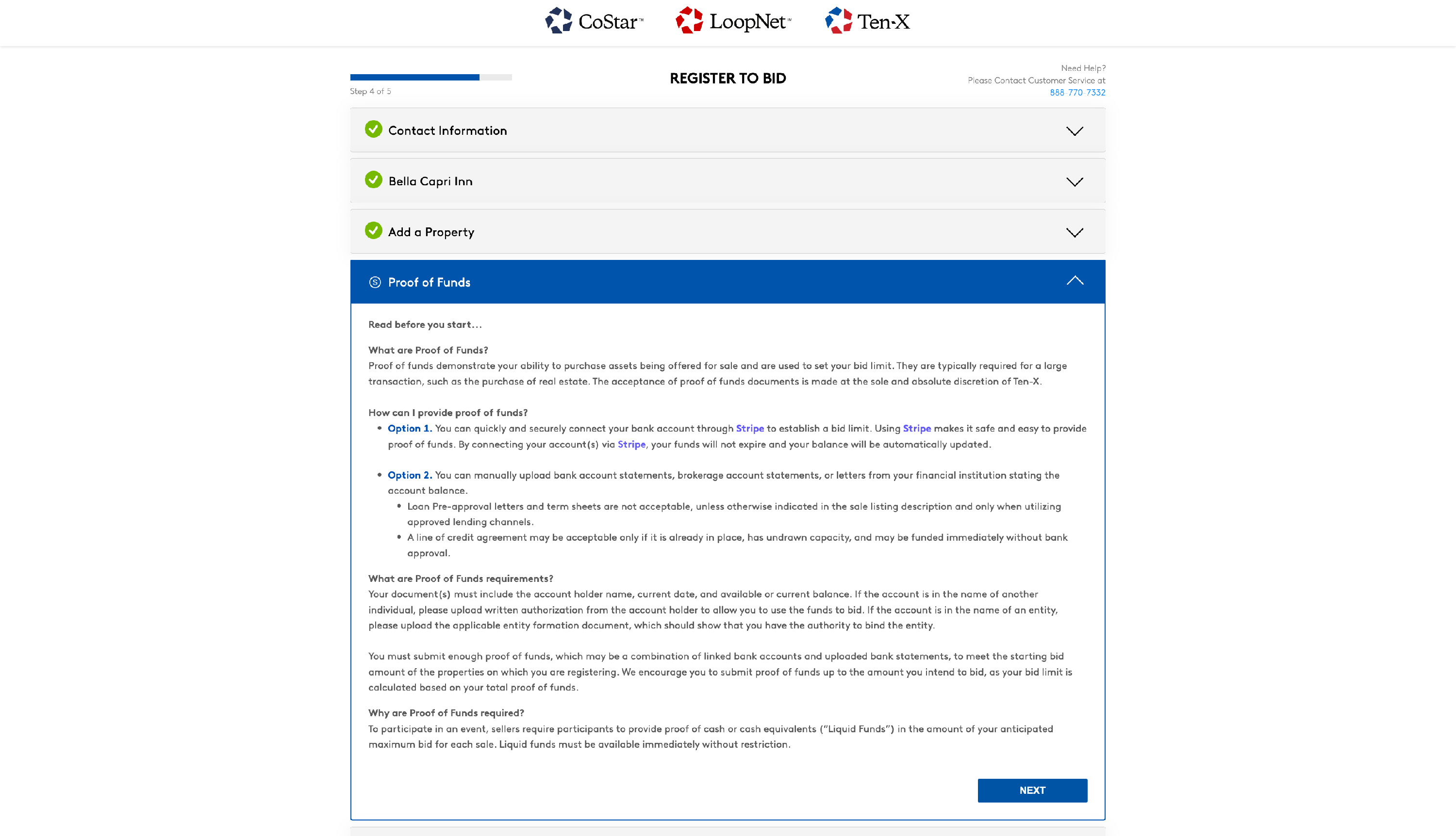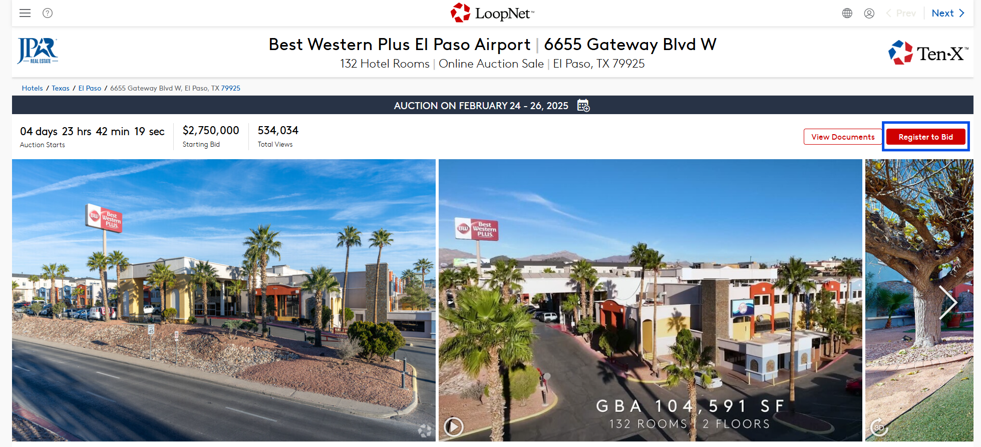 To register to bid for an auction property listed on LoopNet, you must have a LoopNet account.
